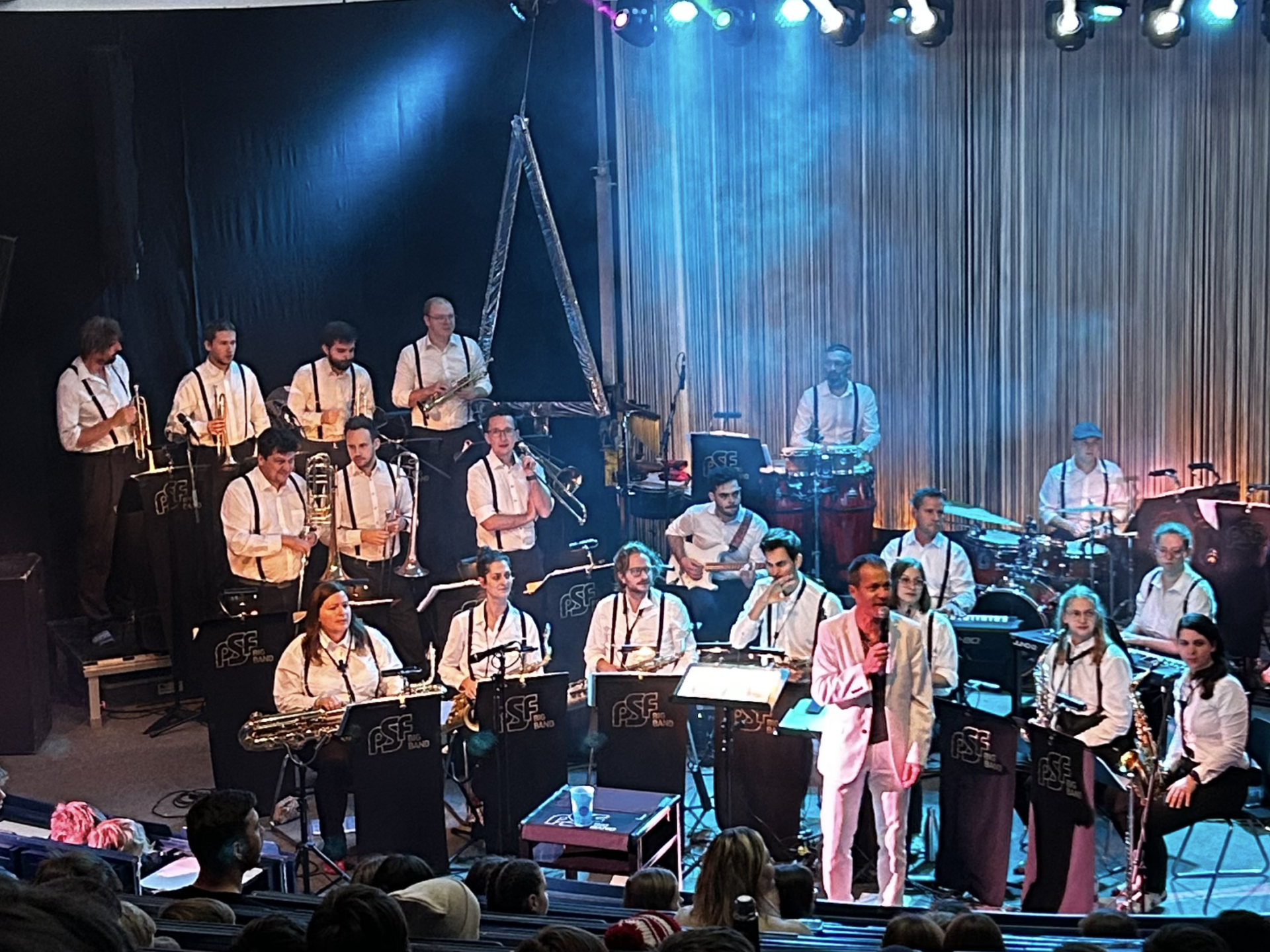 Das rund 40-köpfige Ensemble rund um Bandleader Rainer Lanzerstorfer begeisterte mit einem fulminanten Auftritt und eröffnete dem Publikum einen lebendigen Einblick in moderne Musikpädagogik. In einer kraftvollen Mischung aus Power, Soul und Funk konnten sich auch die Schüler*innen aktiv einbringen und selbst musikalische Akzente setzen.