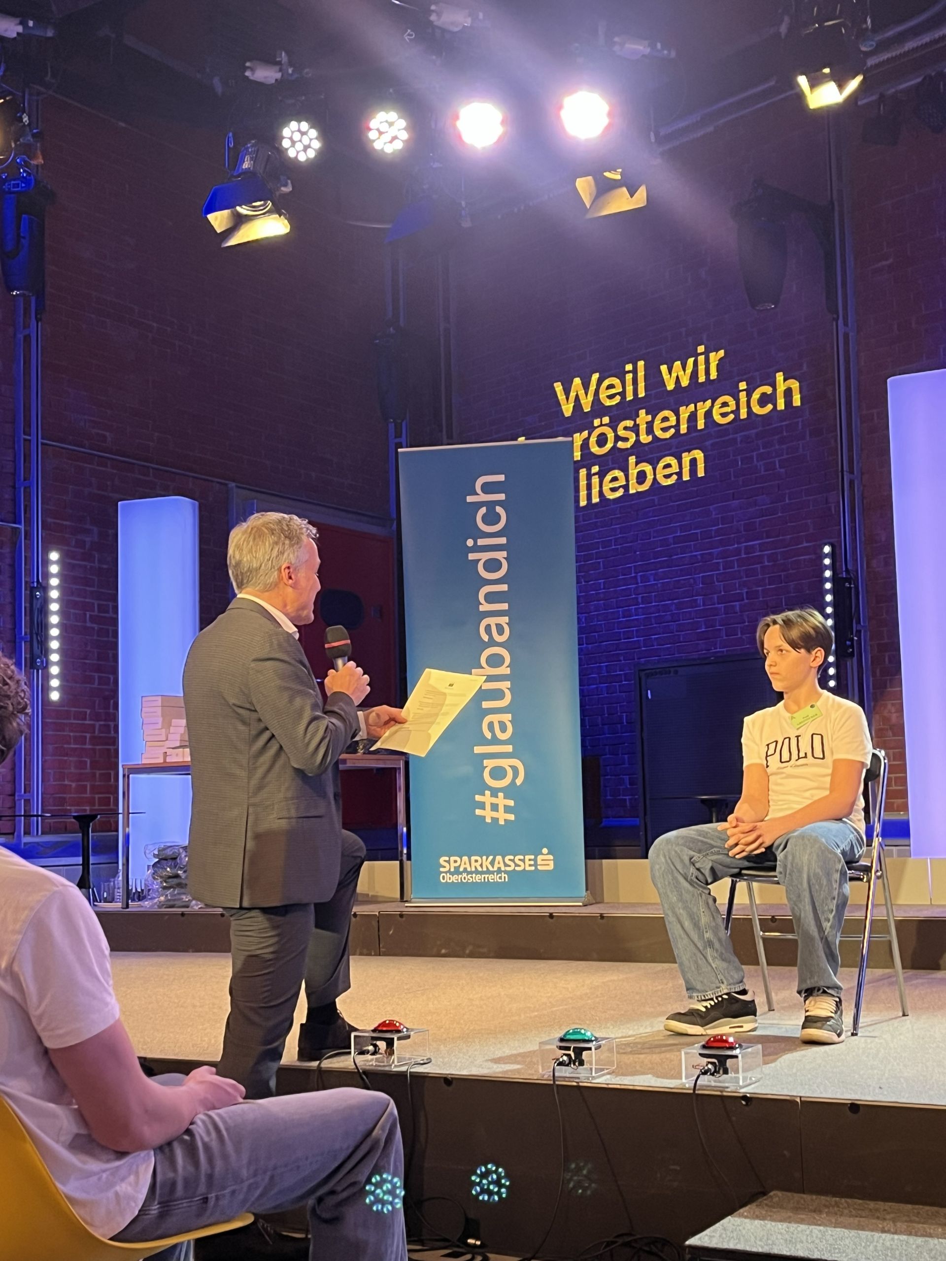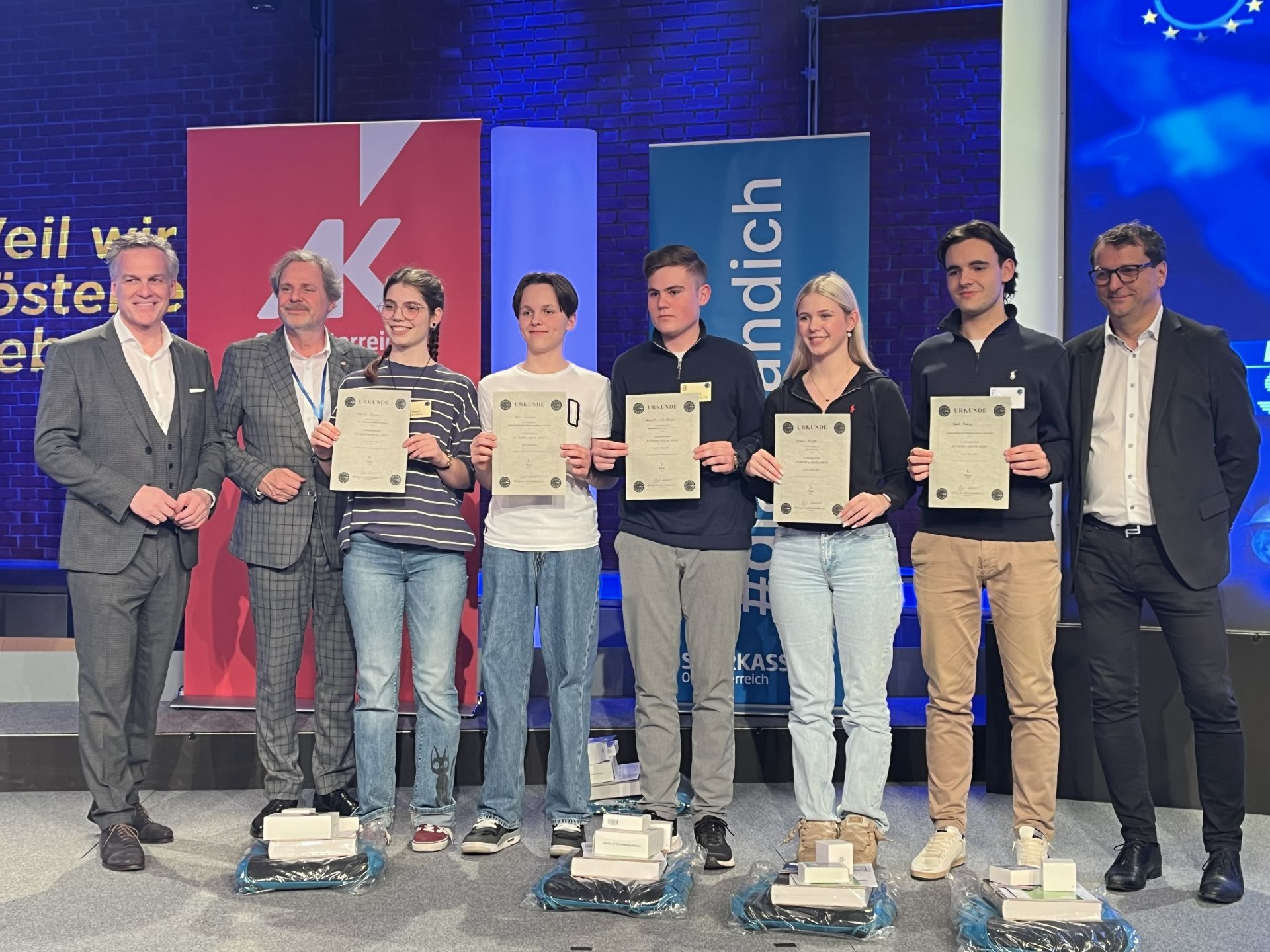 Am 12. März herrschte im ORF-Landesstudio in Linz Wettkampfatmosphäre. Jugendliche aus ganz Oberösterreich kämpften um den Sieg beim traditionsreichen Europaquiz, das erneut von ZIB-Moderator Tarek Leitner souverän moderiert worden ist. Paul Greinecker und Philipp Beyer aus der AHS-Unterstufe sowie Julius Pedak und Emanuel Wiesinger aus der Oberstufe vertraten unser Schule mit großem Einsatz. Im spannenden Finale errang Paul Greinecker aus der vierten Klasse AHS den ersten Platz und wurde somit der Champion in der Wertung AHS-Unterstufe. Wir gratulieren zu dieser tollen Leistung!