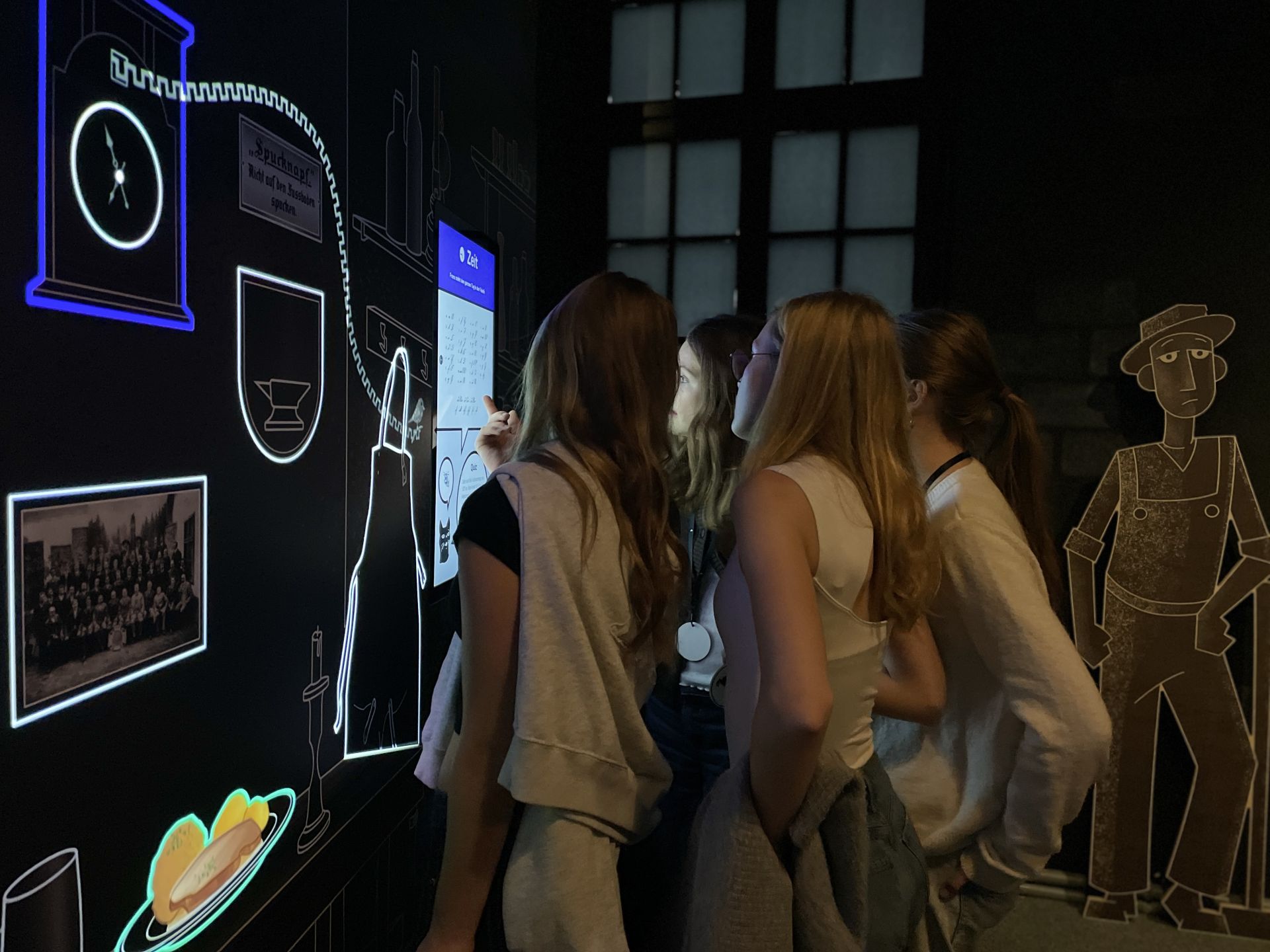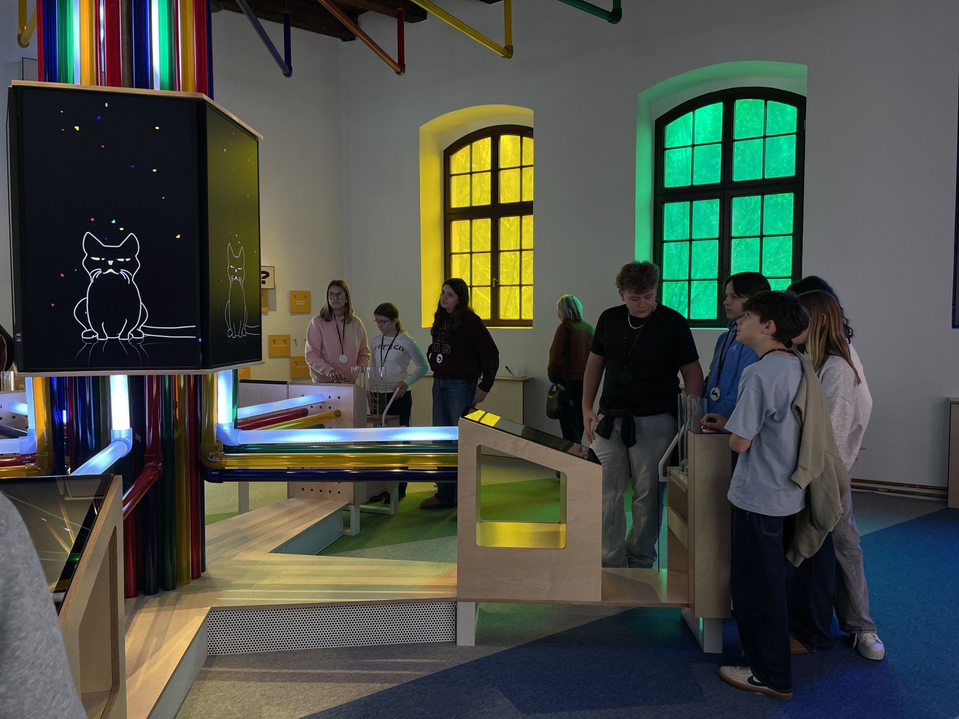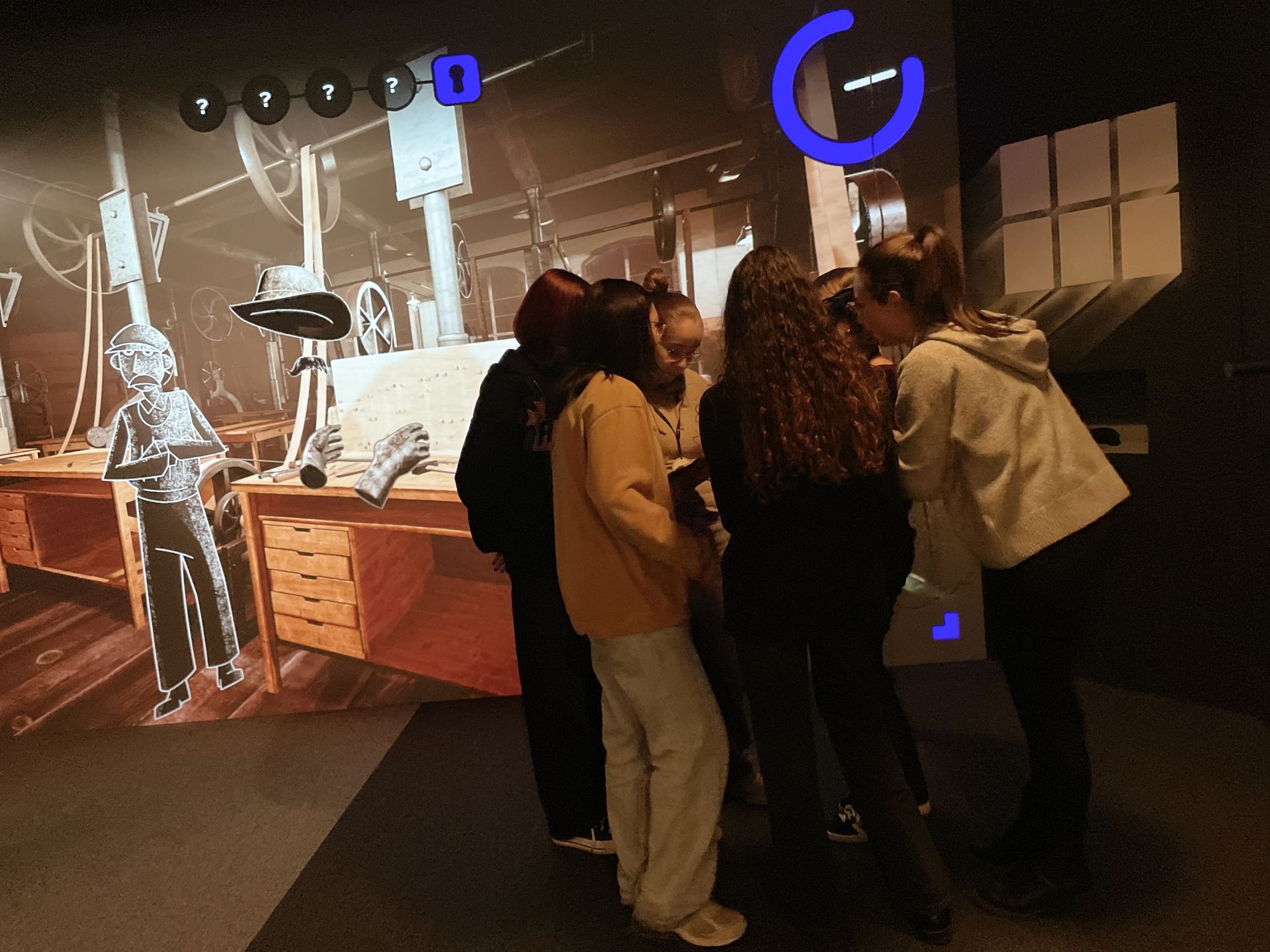 In interaktiven Stationen und mit Virtual Reality – sowie begleitet von einer virtuellen schwarzen Katze - tauchten die Schüler:innen der 4cWrg am 20. November im „Labour Lab“ des „Museums Arbeitswelt“ in Steyr in die Geschichte ein. Aber auch wie die Gegenwart und die Zukunft der Arbeitswelt durch Digitalisierung und ökologischen Wandel verändert werden und welche Möglichkeiten der Mitbestimmung es gibt, beschäftigte die Schüler:innen.