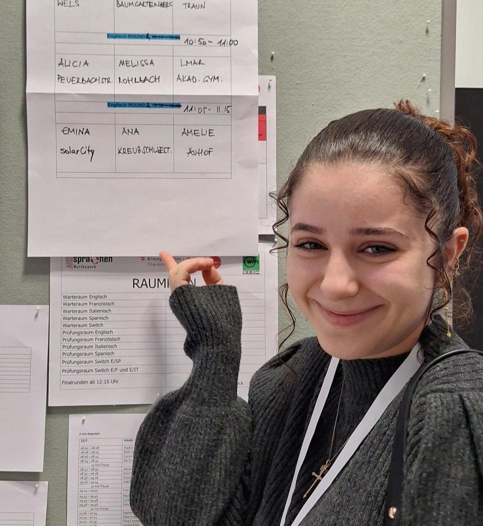 Am 26.02.26 fand der oberösterreichische Fremdsprachenwettbewerb statt. Wir nahmen dieses Jahr mit insgesamt 5 KandidatInnen in Englisch, Französisch und E/F Switch teil. Ana Vladimirova (7A), Felix Schneider (7A), Mila Vidovic (8A), Vlad Ciobanu-Caraus (8A) und Felix Grubmüller (8A) hinterließen durch sprachliches Geschick und inhaltlich stichfeste Argumente einen sehr guten Eindruck bei der Jury. Ana Vladimirova stieg durch ihre sprachliche Eloquenz in die zweite Runde auf und kam bei insgesamt 27 TeilnehmerInnen in Englisch aus ganz Oberösterreich sogar in das obere Drittel. Auch wenn es für keinen der drei ersten Plätze reichte, erbrachten unsere SchülerInnen durchaus eine beachtliche Leistung, wenn man die harte Konkurrenz in Betracht zieht.